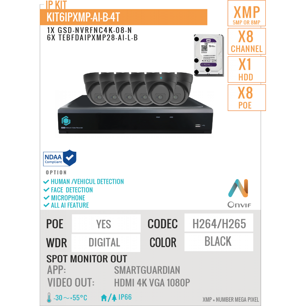 IP AI KIT – 8 ports-8MP/4K + 6 x 8MP cameras + HDD