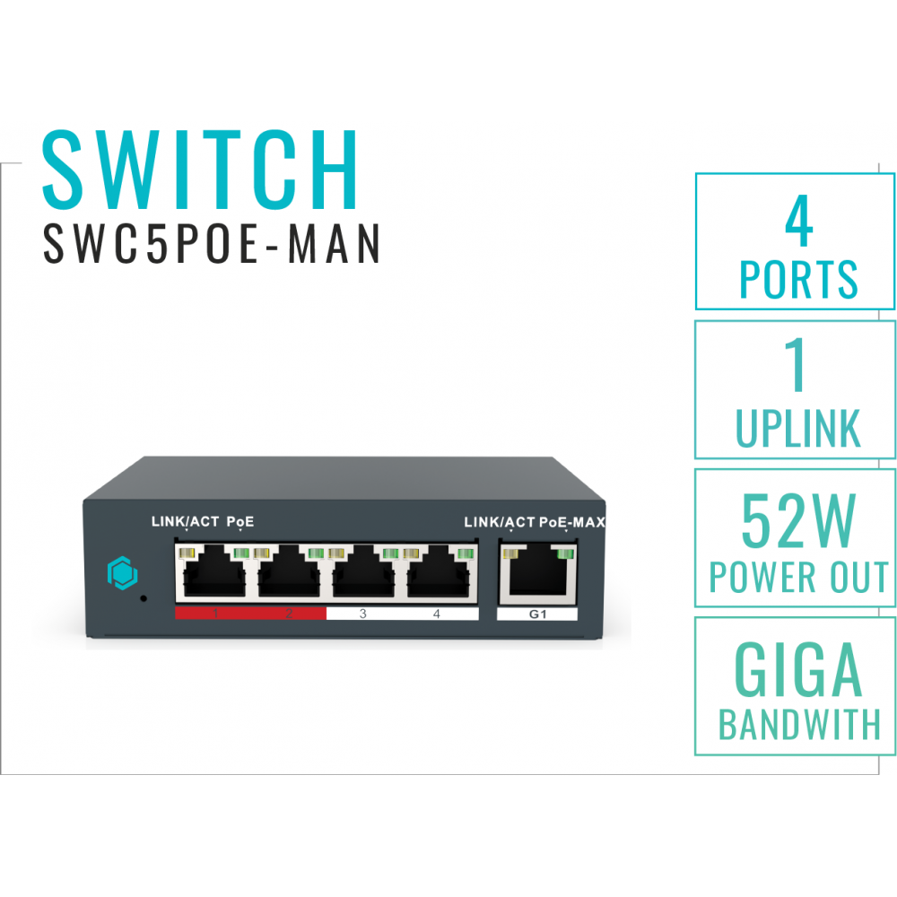 IP Edge KIT – 5 Ports Commutateur + 4 X Eyeball 8MP/4K Camera with AI – 64G