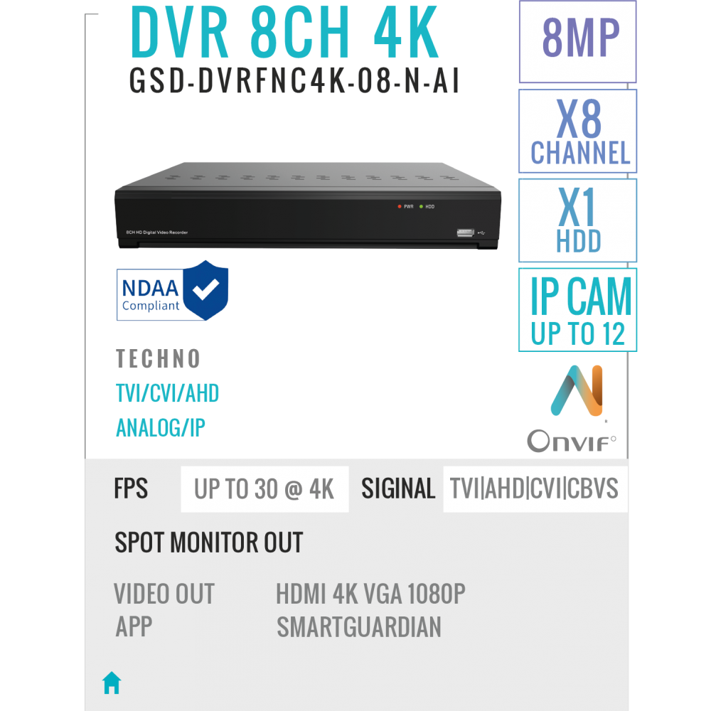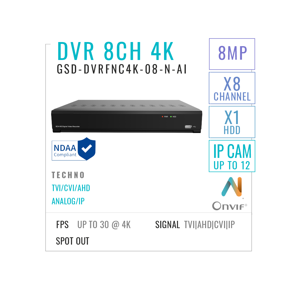 8 Channels DVR Recorder 8MP/4K With AI