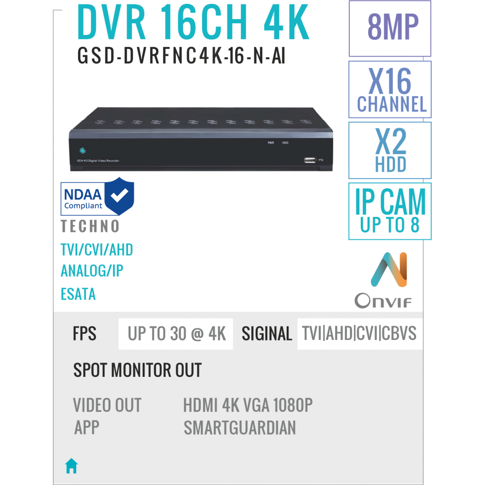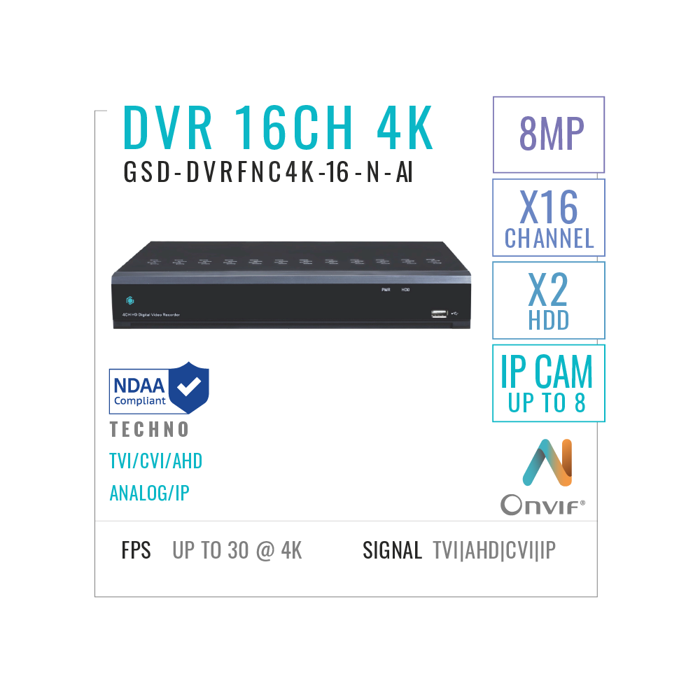 16 Channels DVR Recorder 8MP/4K with AI