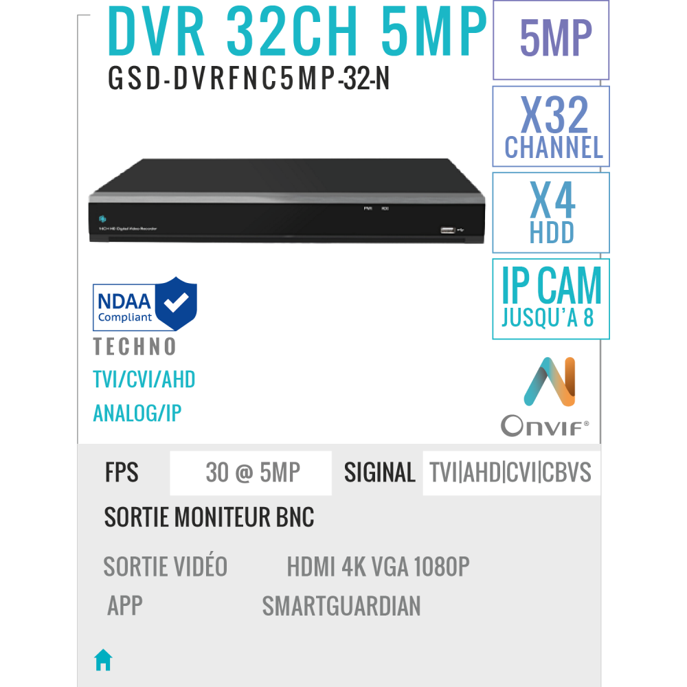 32 Channels DVR Recorder 5MP With AI