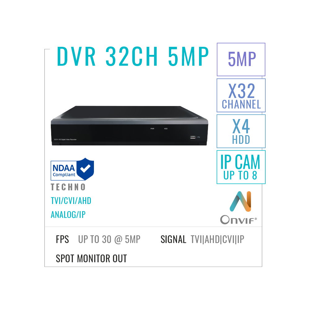 32 Channels DVR Recorder 5MP With AI + HDD