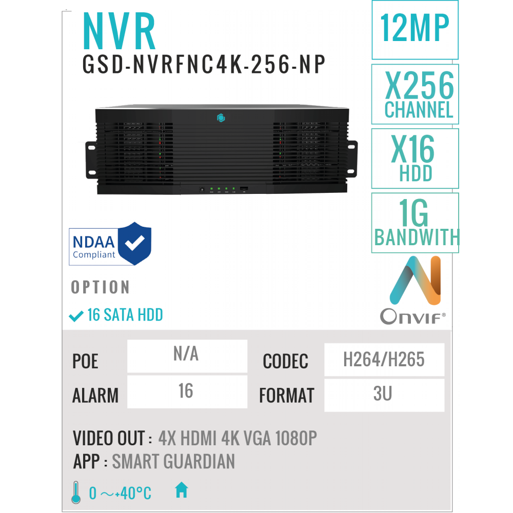 256 Ports NVR Recorder 8MP/4K + HDD