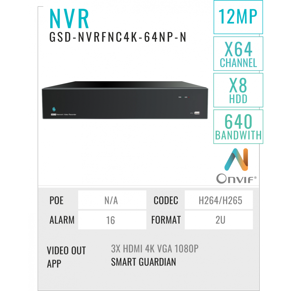 64 Ports NVR Recorder 8MP/4K + HDD