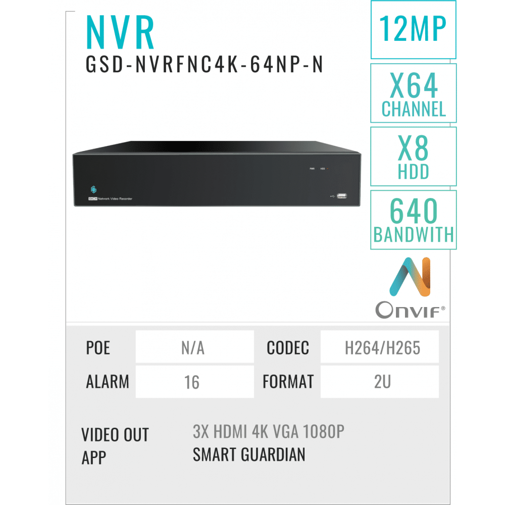 64 Ports NVR Recorder 8MP/4K + HDD Raid