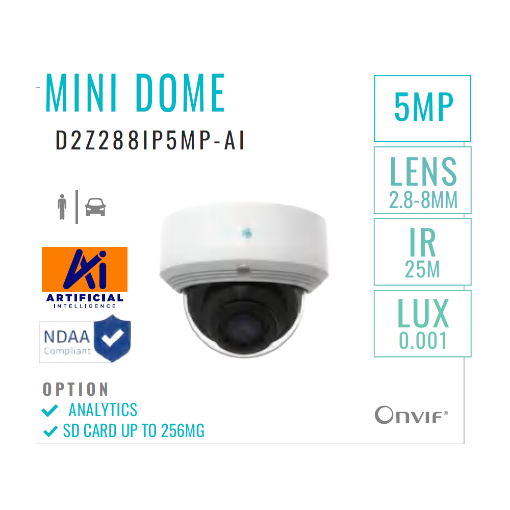 Get state-of-the-art surveillance with our AIO Bullet 5MP Camera with Motorized Lens. Featuring a 2.8-12 mm motorized lens, this camera offers ultra-high-definition resolution for clear, detailed images. Its advanced infrared technology ensures effective night vision up to 30 meters away, enabling continuous surveillance even in low-light conditions. Compatible with TVI-CVI-AHD-960H systems, the device offers unrivaled integration flexibility. Its IP66 water-resistant white housing and included wall brackets make it ideal for both indoor and outdoor use. What’s more, its NDAA compliance guarantees enhanced security for your surveillance installations.